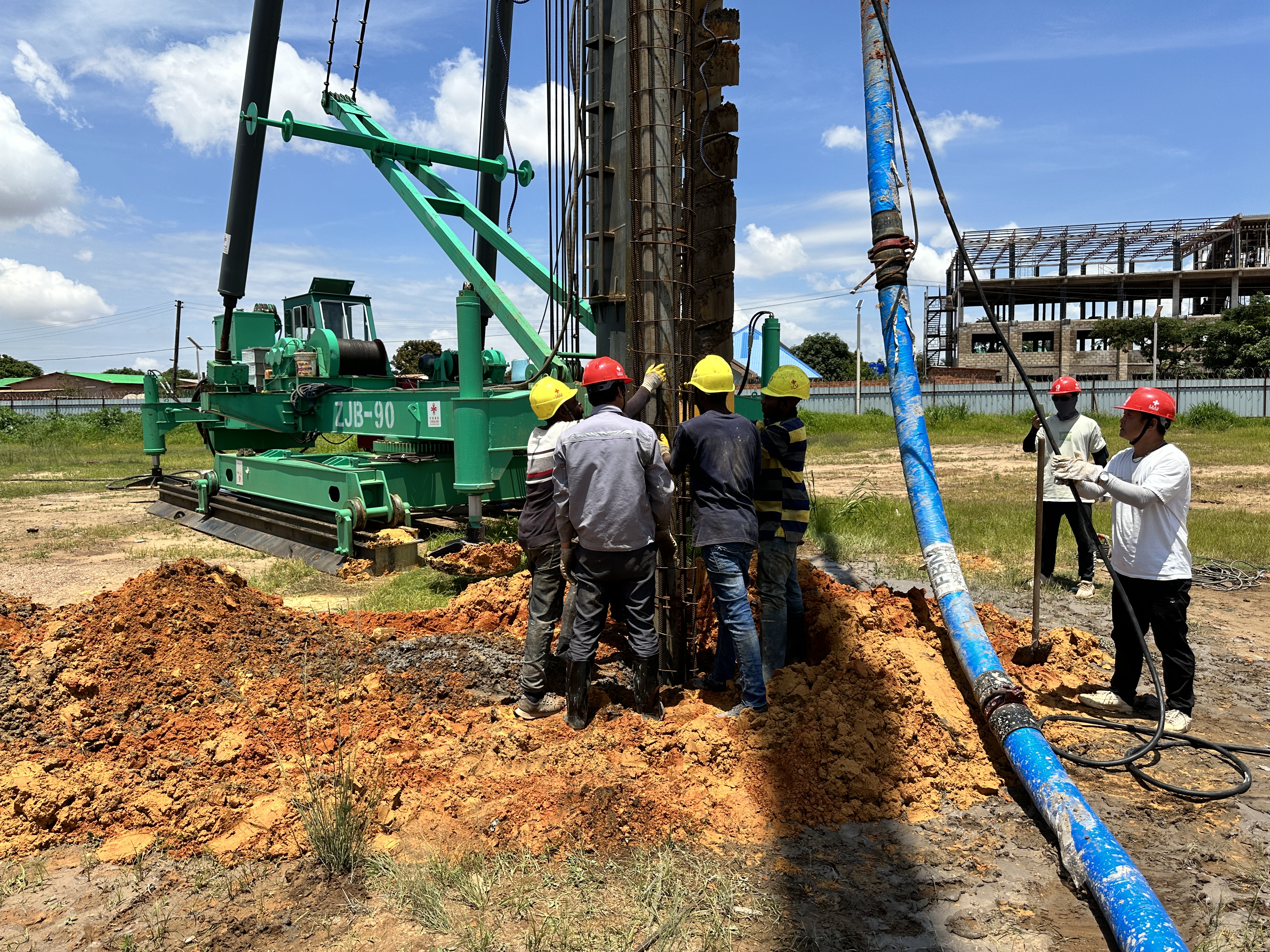 援剛果(金)職業技術培訓中心項目是落實中非合作論壇北京峰會成果,“八大行動”中能力建設的載體。項目建成后,對提高當地職業培訓水平、帶動當地就業、更好地建設國家職業培訓體系具有重要作用。面對開工前期的重重困難,項目團隊緊密團結,迎難而上,搶抓開局,協調人員、機具、材料有序入場施工。目前項目已順利進入工程樁施工階段,在保證質量至上、安全第一的前提下,項目全體成員鉚足干勁,加班加點搶進度。