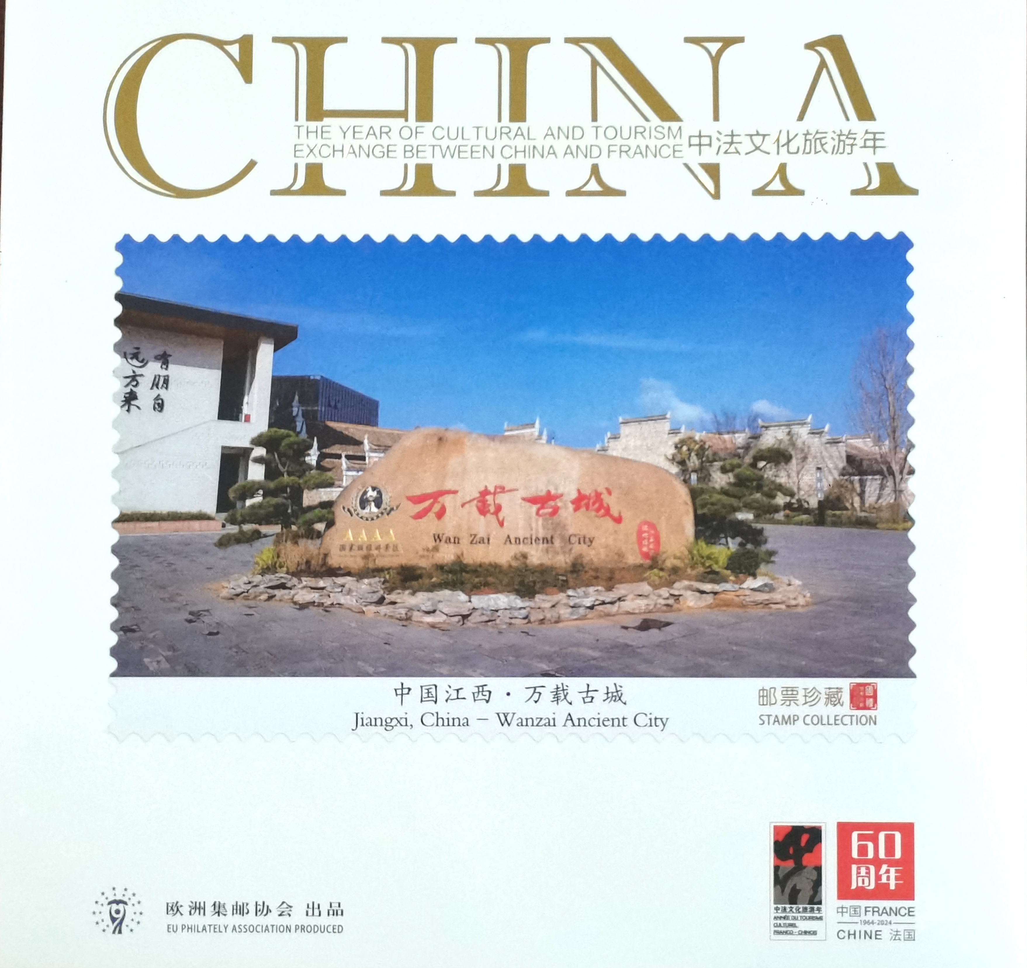2024年是中法建交60周年暨中法文化旅游年。江西萬載古城作為中國旅游景區的代表,憑其獨特魅力,成功登上法國郵票,全球發行。這代表了國際社會對萬載古城的認可,更進一步提升了萬載古城的國際影響力和品牌價值,讓世界以郵為媒,再次發現中國之美。