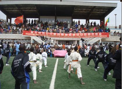 當日,交接儀式現場彩旗飄揚,人頭攢動。儀式現場,當地群眾和體育院校、團體進行了武術、跆拳道、拳擊、足球、傳統角斗等體育項目表演,氣氛隆重而熱烈。