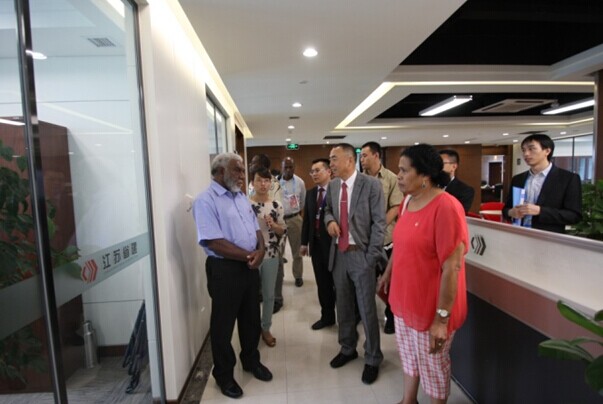 8月15日上午,正在中國南京出席第二屆青奧會開幕式的瓦努阿圖共和國總理喬·納圖曼在瓦外交部長薩托·基爾曼、瓦駐中國大使莫利薩夫婦和中國駐瓦大使謝波華夫婦等陪同下,率領政府代表團一行10余人來集團公司考察訪問。陳正華董事長熱情接待了代表團一行。