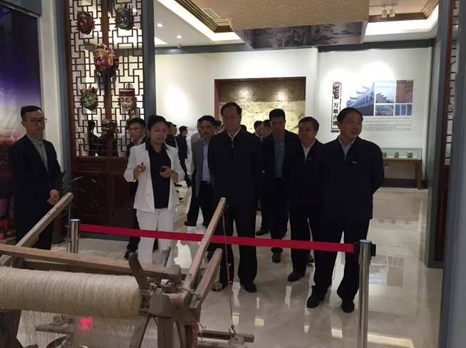 毛偉明首先視察了萬載古城文化展示中心,領略了當地深厚的民俗、非遺文化,并認真聽取了集團萬載瑞辰文化旅游發展有限公司總經理張藜對古城項目的詳細介紹。